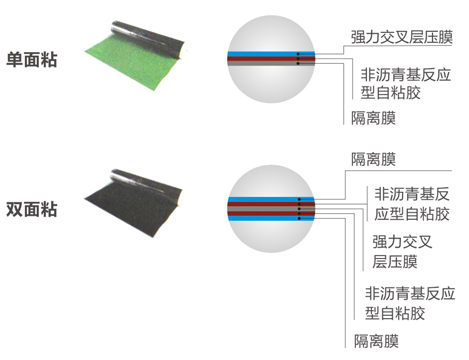 該材料的強力交叉層壓膜為“雙層疊加薄膜+縱橫網(wǎng)狀結(jié)構(gòu)設(shè)計”,其抗拉強度、抗撕裂強度、尺寸穩(wěn)定性、熱穩(wěn)定性和抗紫外線性能都大大提升,自推出以來一直是國家重點工程、市政建設(shè)項目的首選自粘類材料。