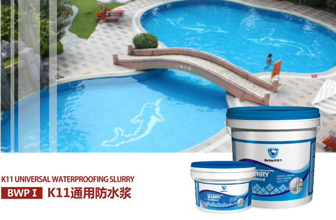 K11通用防水漿屬于雙組份防水涂料。液料是由聚合物乳液與其他助劑經(jīng)過特殊工藝加工而成,粉料是由水泥、石英砂、無機(jī)填料經(jīng)過高科技特殊處理加工而成。液料與粉料混合攪拌成防水涂料。具有粘結(jié)力強(qiáng)、抗?jié)B性強(qiáng),耐水性好等特點,屬于無毒、無害、無污染綠色環(huán)保產(chǎn)品。